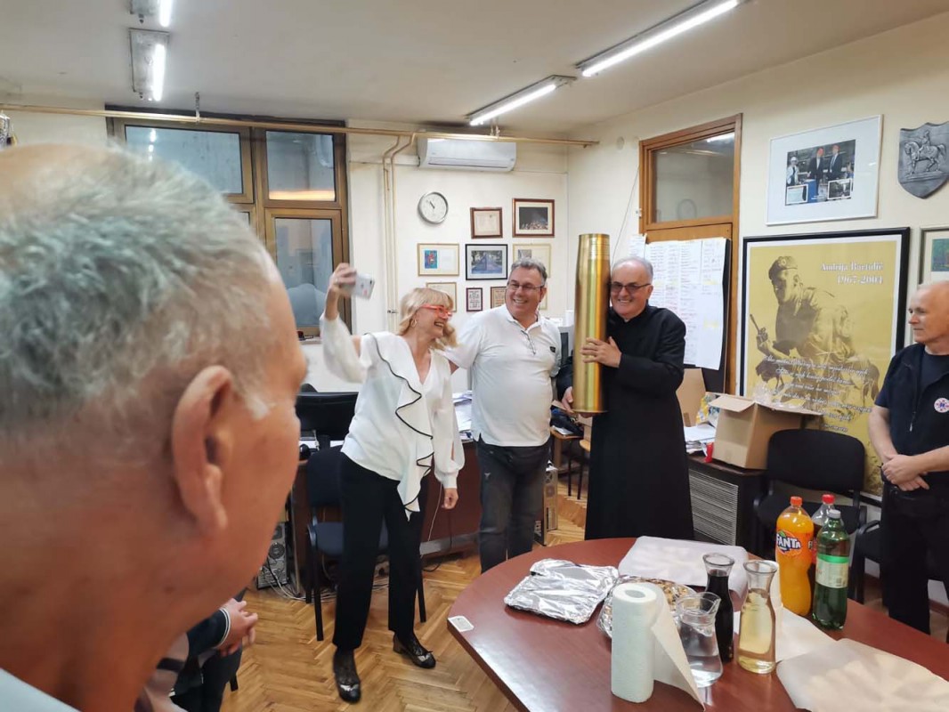 Na marginama događanja don Vjenceslavu Kujundžiću uručena je čahura iz Domovinskog rata s posvetom, kao zahvala za svekoliku potporu i kao spomen na ostvarenje zajedničkog im sna- Lijepe naše.