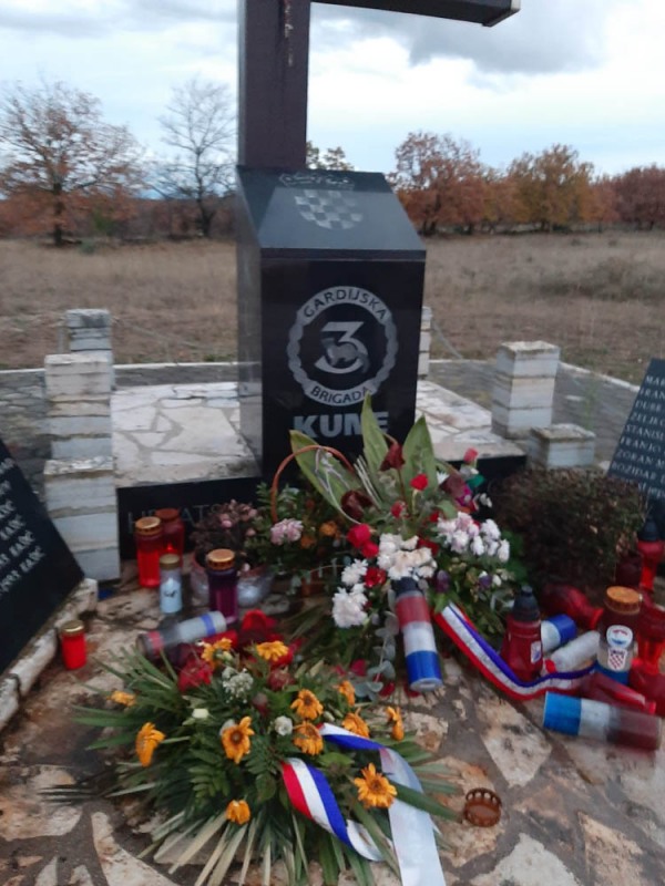 gdje su zajednički zapalili svijeću tragično preminulom domoljubu, te molitvom na spomeniku poginulim suborcima  iz 3. gardijske brigade